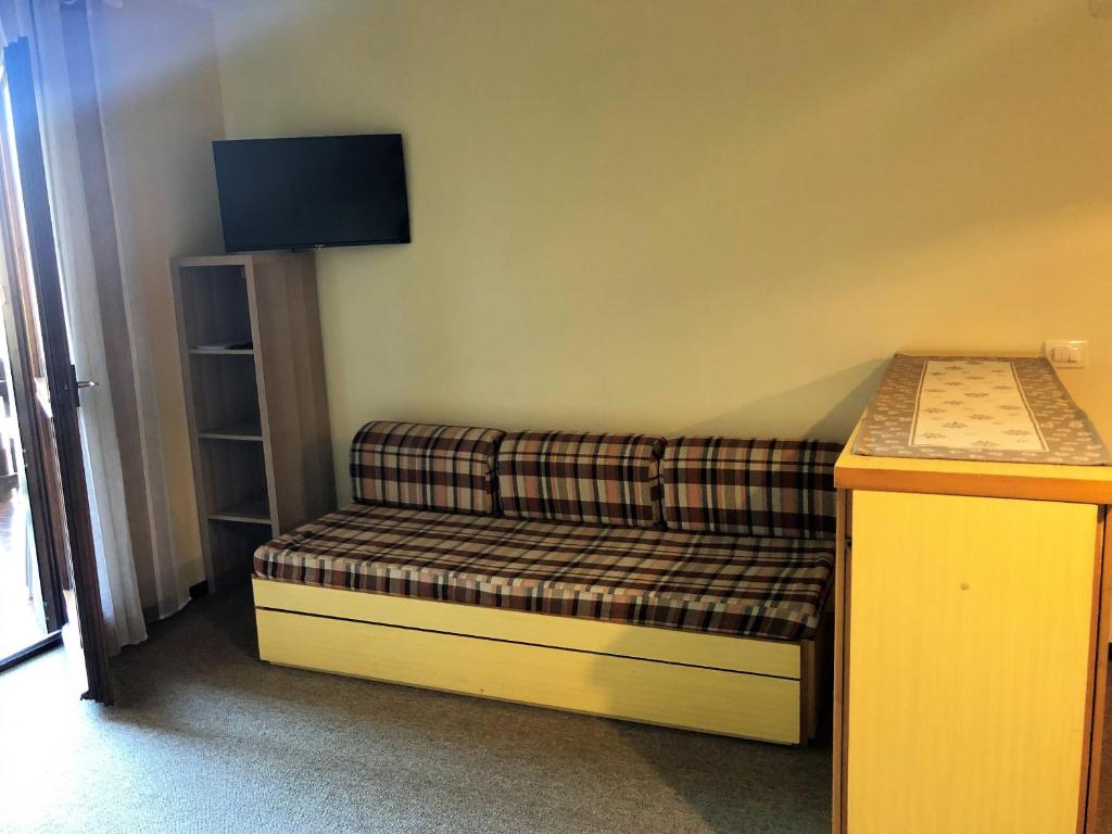 L'appartamento presenta una terrazza, una vista sulle montagne, 1 camera da letto, un soggiorno, una TV, una cucina attrezzata con frigorifero e tostapane, e 1 bagno con doccia.