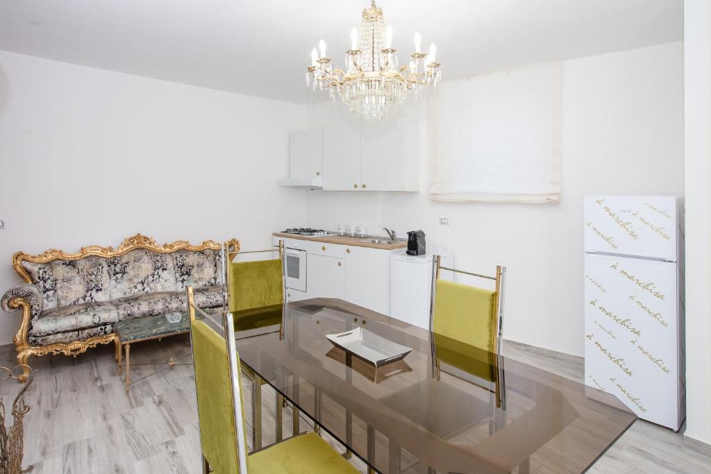 Gli appartamenti sono ospitati in un’elegante palazzo borghese di fine ‘800, ricavati dai bassi dello stabile sono stati distribuiti con sapiente equilibrio di comfort. Le camere sono arredate in stile minimalista dal desiner nonché stilista Antonio Catanzaro, socio fondatore della società “AC Couture”. I mobili conservano l’originalità che in armonia con gli spazi e gli arredi, accolgono gli ospiti in un ambiente giovane e dinamico. Prediligono di base il colore bianco, in armonia con le tinte pastello delle parti in tappezzeria. Questa caratterizza i colori dei tre appartamenti: Chantal con il rosa che evoca le tenui sfumature del fiore di mandorlo, Ottavia con le note del verde pistacchio di Bronte e, Augusta con la rilassante tonalità dell’azzurro mare acese. Varcando un cancello in ferro battuto con motivi floreali e baroccheggianti, guardando a destra, una danzatrice in marmo policromo, rapirà lo sguardo degli ospiti. Trovandosi in un’ampia veranda interna a cielo aperto, lo staff vi accoglierà con l’irresistibile cordialità siciliana dall’atmosfera familiare per accompagnarvi all’interno della residenza. Se amate l’accuratezza dei particolari, apprezzerete la "à Marchisa"