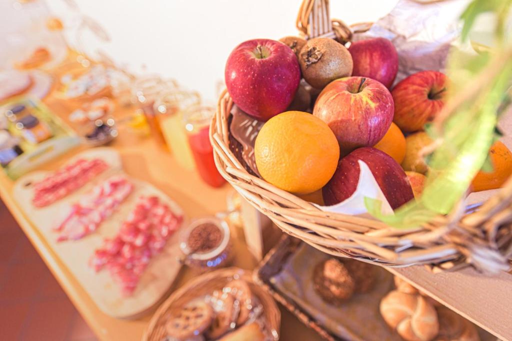 Al mattino vi attende una colazione a buffet, servita nella caratteristica sala ristorazione con pavimenti in cotto e tovaglie a quadretti, mentre nella sala degustazione potrete sorseggiare i vini della proprietà, accompagnati da salumi e formaggi regionali.