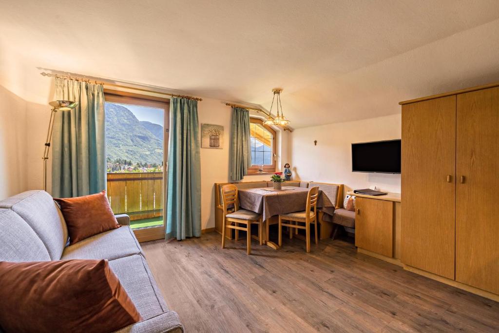 In mezzo ai vigneti, a Tirolo, si trova il Residence Immenhof con il suo appartamento "Valle dell'Adige". L'appartamento, di 50m², si trova al 2° piano ed è composto da un soggiorno con divano letto per 2 persone, un angolo cottura ben attrezzato, 2 camere da letto e un bagno. Può quindi ospitare comodamente fino a 6 persone. All'interno dell'appartamento, a vostra disposizione, troverete una connessione Wi-Fi, una TV e un asciugacapelli. Su richiesta vi saranno forniti una culla, un lettino per bambini e un seggiolone. L'appartamento è dotato anche di un balcone arredato, dove potrete rilassarvi godendovi una splendida vista sul paesaggio circostante. L'area esterna, in comune con gli altri appartamenti del residence, è composta da un giardino, dove potrete prendere il sole sulle sedie a sdraio a vostra disposizione, una piscina riscaldata a energia solare e una terrazza panoramica, che vi regalerà una fantastica vista sulla campagna meranese, sulla Val d'Adige e sul Gruppo di Tessa. Attraverso la pittoresca "Passeggiata Tappeiner" (Tappeinerweg), potrete raggiungere il centro di Merano, dove troverete numerosi ristoranti e negozi, a piedi e in poco tempo. La città di Merano è ideale per tutti coloro che anche in vacanza desiderano esplorare la località di villeggiatura. Potrete, infatti, fare diverse escursioni per raggiungere le cime più maestose delle Dolomiti, fare percorsi in mountain bike, fare rafting o visitare il percorso ad alta fune sulla Malga Taser (14,7 km). Altre mete escursionistiche degne di nota nella zona sono Castel Tirolo (3,5 km), il castello di Scena (4,3 km), i bellissimi giardini di Castel Trauttmansdorff (3,3 km) o le moderne Terme di Merano (2 km). In inverno potrete, invece, recarvi nell'area sciistica, Merano 2000, che si trova nelle vicinanze (6 km). Il parcheggio è disponibile all'interno della proprietà, dove troverete anche un garage in cui potrete posteggiare la vostra auto. Le lenzuola e gli asciugamani sono inclusi nel prezzo. Un barbecue è disponibile su richiesta, gli animali domestici sono ammessi per un costo aggiuntivo e se richiesto in anticipo. C'è una stanza per la pulizia delle biciclette e la ricarica delle e-bike.