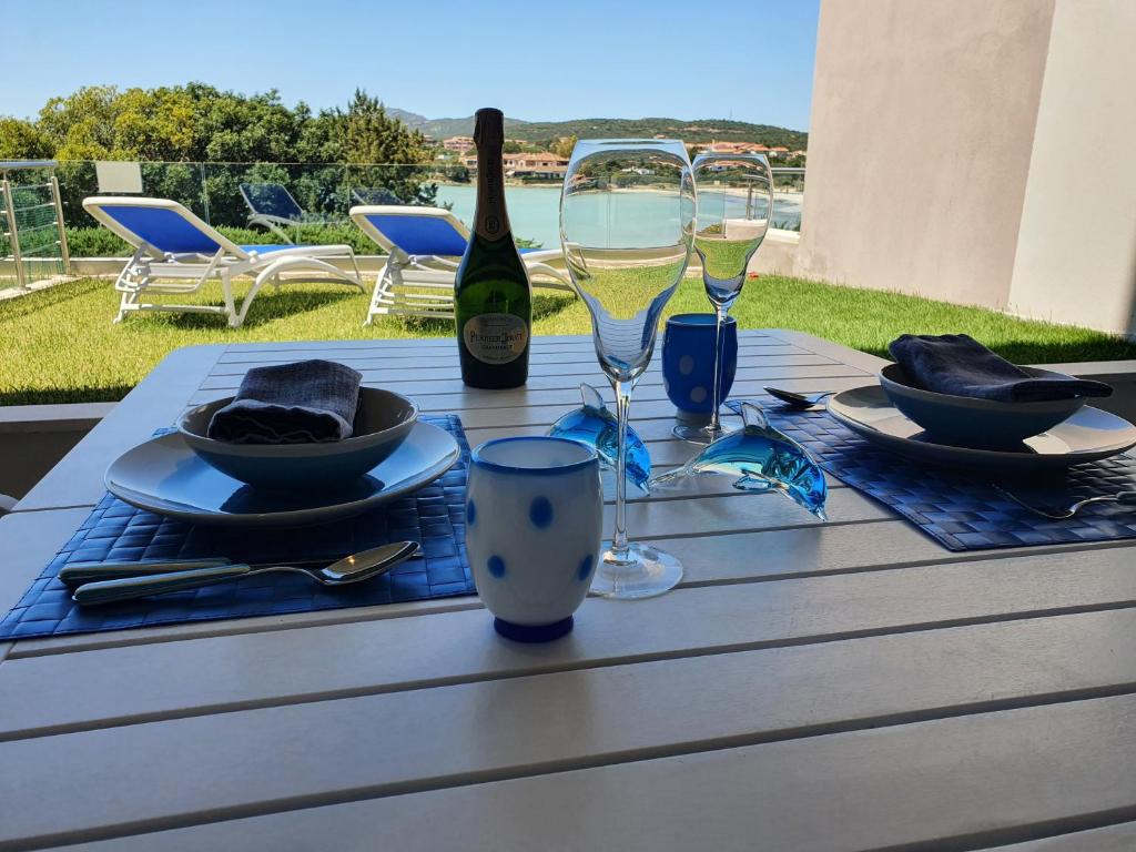 Nuovissimo appartamento fronte mare situato nel nuovo residence Aironi. Dispone di 1 camera da letto, 1 bagno, soggiorno con divano letto matrimoniale, cucina attrezzata di tutto, 2 terrazze, giardino e posto auto privato in garage.Si da anche la disponibilità di 2 sdraio e 1 ombrellone che si possono portare direttamente nella spiaggia libera di fronte casa. L'appartamento e' stato arredato in stile moderno con colori che rispecchiano il fascino del mare! E' situato direttamente sulla spiaggia ed a 2 passi da tutti i servizi principali di Golfo Aranci. L'aeroporto di Olbia e' a 20 minuti di distanza e la costa smeralda pure. Su richiesta si può organizzare il servizio navetta aeroportuale. Si forniscono informazioni per quello che riguarda servizi ristorazione ed escursioni guidate nella zona.