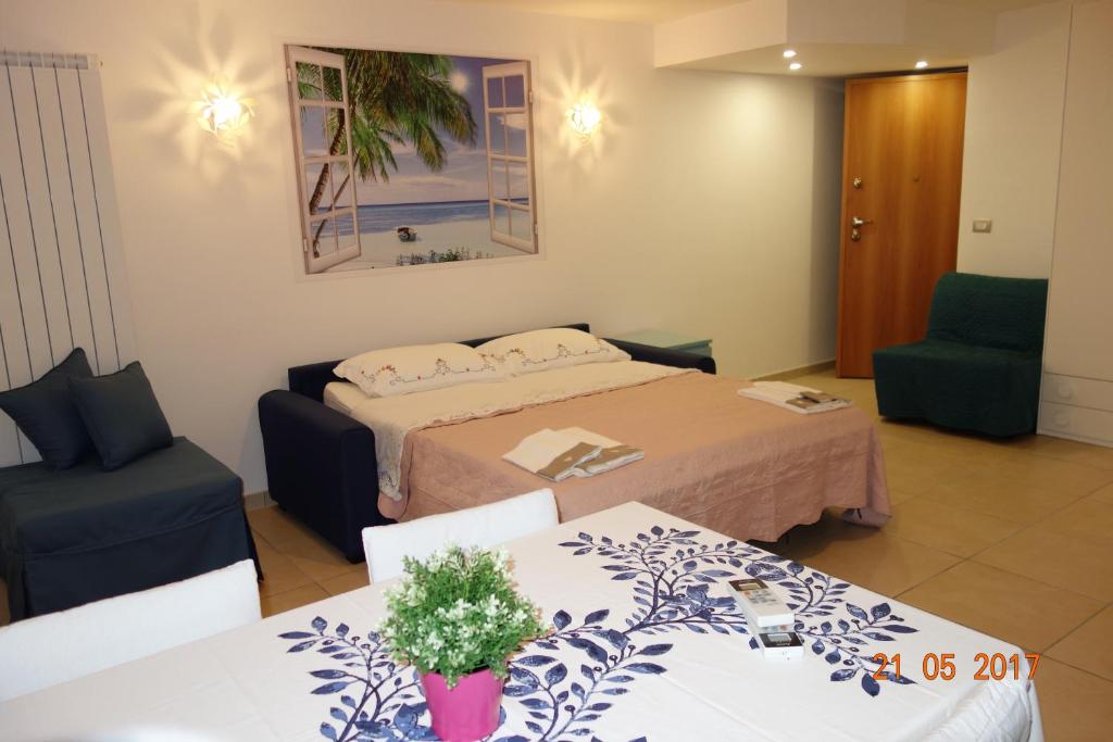 Camera in. Il BB - Spacious quadruple room a stones steps from the sea si trova a Pineto. Le camere sono dotate di balcone. La struttura dista 40 km d