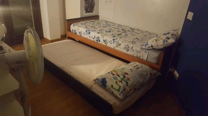 L'appartamento è composto da cucina-soggiorno, 2 balconi (dei quali uno con tavolo da pranzo). 2 camere, (una matrimoniale e una singola con 2 letti) un divano-letto matrimoniale in soggiorno. Piatti, posate, bicchieri, pentole, forno, piano cottura, frigo con congelatore, lavatrice,stendibiancheria, sapone, asciugacapelli, 2 ventilatori, lenzuola, asciugamani. Pavimento in parquet in tutto l'appartamento. Bagno con vasca. Si accettano animali di piccola taglia come gatti o cani piccolissimi.