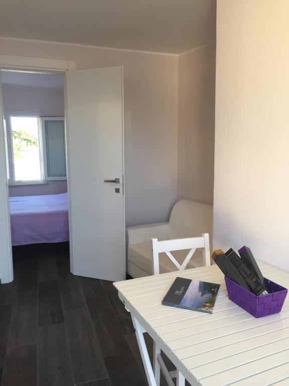 Appartamentino nel cuore di Peschici, camera matrimoniale, cucina, bagno con doccia, aria condizionata, zanzariere, terrazzo vista mare. A pochi minuti dalla spiaggia. Vicino a negozi di ogni tipo. Parcheggio libero in zona. Completo di stoviglie e biancheria. Cozy renovated flat in the heart of Peschici, bedroom, kitchenette, bathroom with shower, air conditioning, terrace, view on sea. Few min. walk from the beach. Close to all amenities. Free parking in the area. Has crockery, espresso machine & linens.
