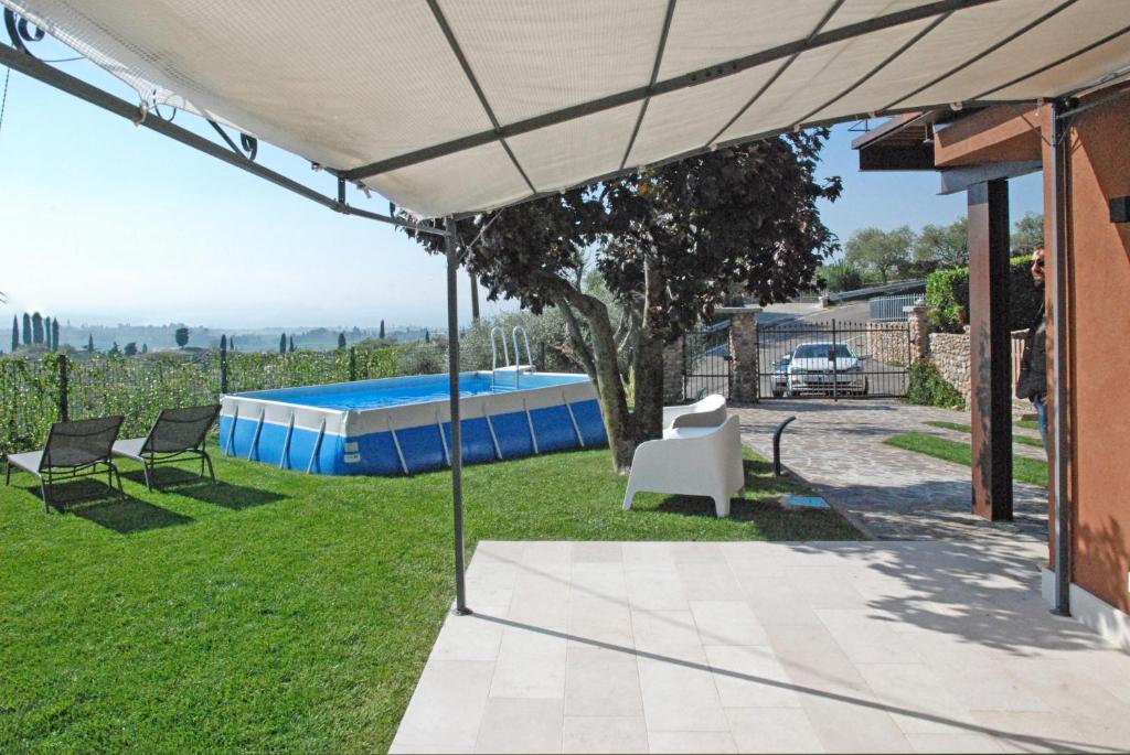 Independent apartment on the hills of Lake Garda, with panoramic view. The place, located on a quiet spot, is suitable for those who loves hiking and biking since is surrounded by cycling routes and trails with a fantastic view of the lake. The apartment is cozy and spacious ( 105sqm/1100sf) and is surrounded by a garden with a swimming pool overlooking the lake and the countryside. Nearby: Bardolino, Lazise, Garda, Parco Natura Viva, Gardaland, Movieland, Caneva.