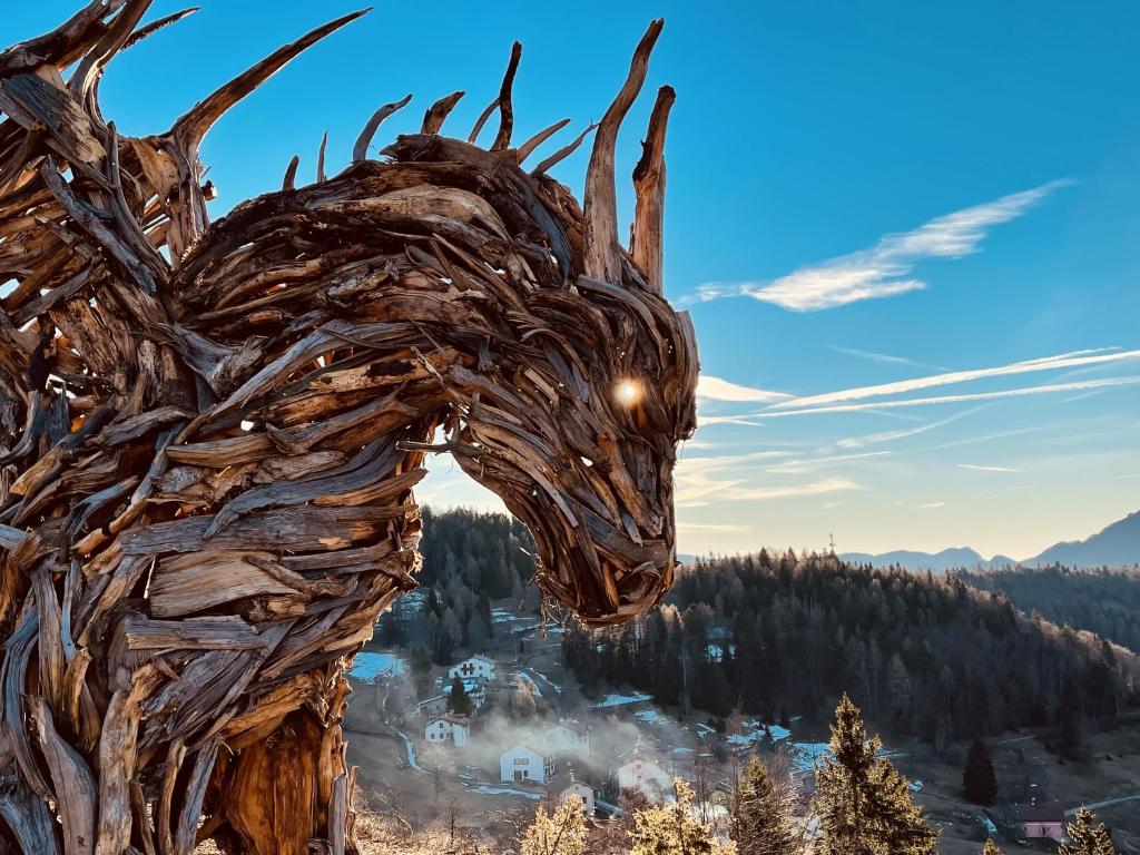 Potrete anche recarvi nelle bellissime piane di Vezzena e Millegrobbe, passando per le antiche malghe e gli antichi forti della grande guerra e magari potete visitare il meraviglioso maso cimbro di Luserna, uno dei pochi comuni d'Italia dove si parla ancora fluentemente l'antica lingua Cimbra. Proseguendo invece in direzione opposta verso Folgaria potrete fare una piccola deviazione di pochi minuti e raggiungere uno dei più meravigliosi biotopi naturali dell'altipiano ovvero le cascate del Valimpach che soffiano l'acqua direttamente dal lago di Lavarone. Se volete raggiungere il centro di Folgaria potrete farlo in auto percorrendo la statale in pochi minuti oppure anche in MTB seguendo i numerosi sentieri ufficiali. Per gli amanti dello sci alpino la nostra posizione è molto baricentrica in quanto potrete raggiungere tutti i caroselli sciistici dell'altipiano in pochissimi minuti di auto o utilizzando l'efficiente Skibus che ogni giorno viene messo a disposizione con più passaggi per permettere di raggiungere le piste anche qualora non vogliate utilizzare la vostra auto. Per gli amanti delle ciaspole invece i percorsi partono proprio sotto casa, seguendo il sentiero verso il bosco.