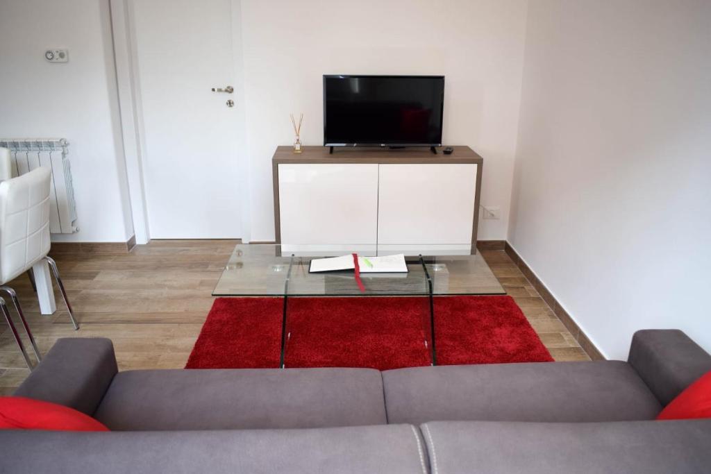 L'appartamento presenta 1 camera da letto, una TV a schermo piatto, una cucina attrezzata con lavastoviglie e forno, una lavatrice e 1 bagno con bidet.
