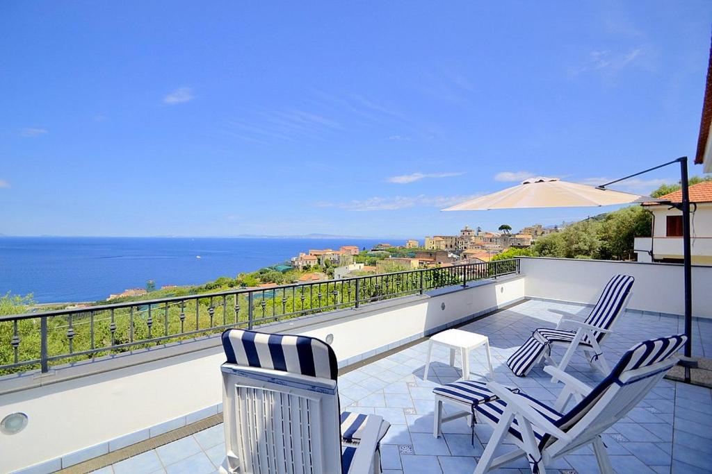 Baby equipment is available for this property Charges may apply, please let us know before arrival if you require this.Extra bed, baby bed services can also be arranged on arrival. All payments will be taken in GBP. Villathis property is an elegant and welcoming two-story independent house which faces the sun and the sea. It sleeps six people. From Villathis property you will enjoy a gorgeous view of the greenery and of the sea. Villathis property is 200 square meters 2150 square feet. It features a panoramic private terrace, two private patios, air conditioning please read description below to check in which rooms the units are installed, winter heating and WI-FI Internet access. You will be roughly 1 km 0.6 miles from the center of Massa Lubrense, where you will find restaurants, shops, public transportation and the beach. You will find a grocery store a few meters feet away, the stop for SITA bus Sorrento - Massa Lubrense - Nerano line a few meters feet away and the closest beach Spiaggia Marina della Lobra at roughly 1 km 0.6 miles. You will reach Villathis property from the parking area going up a short route that cuts through a garden and includes approximately 22 stair...