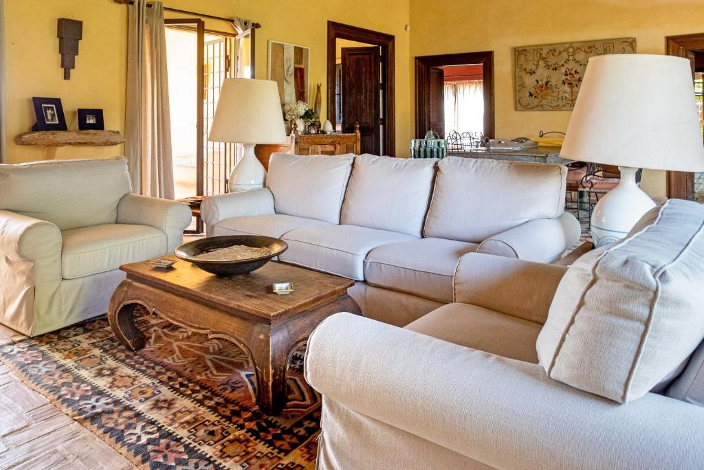 La villa presenta 4 camere da letto, una TV, una cucina attrezzata con lavastoviglie e forno a microonde, una lavatrice e 4 bagni con vasca o doccia.