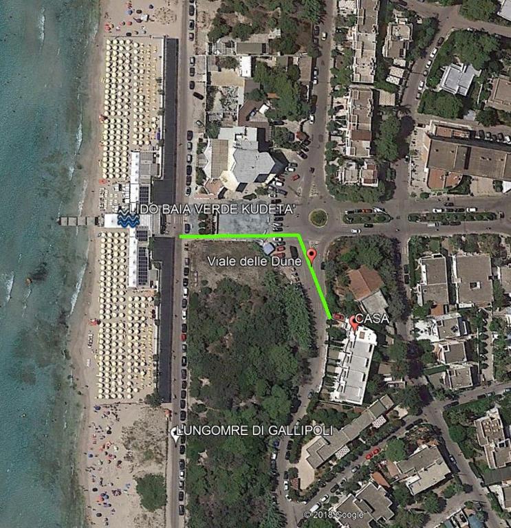 Il FRONTE MARE VIA DELLE DUNE dista 1,7 km dalla Spiaggia degli innamorati e 44 km da Piazza Sant'Oronzo. La struttura sorge a 87 km dall'Aeroporto di Brindisi-Casale, lo scalo più vicino, per il quale organizza un servizio navetta a pagamento.