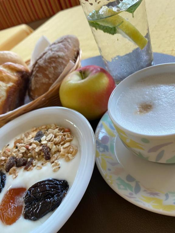 La ricca colazione a buffet dolce e salato comprende torte fatte in casa, uova sode, prosciutto e formaggio, e viene servita nel giardino durante la bella stagione.