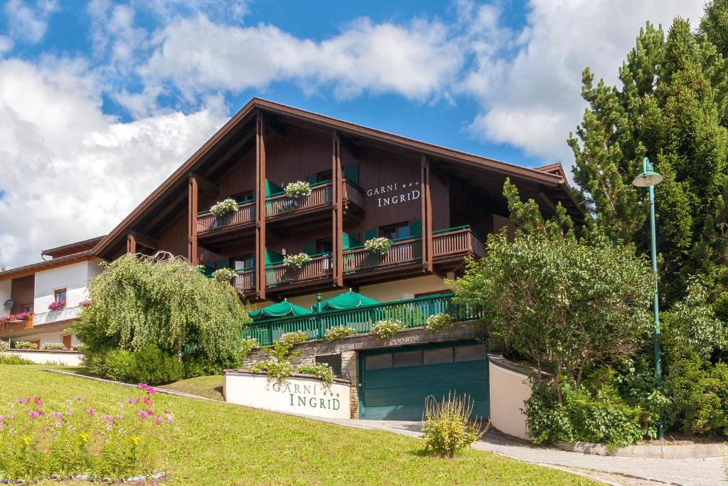 Situato a Dobbiaco, il Garni Ingrid dispone di una terrazza dotata di tavoli e sedie con vista sulle Dolomiti, una sauna e offre camere in stile alpino con balcone.