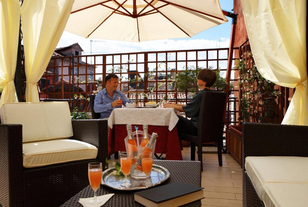 Tutte climatizzate, le camere sono impreziosite da tappeti persiani e lampadari in vetro di Murano, mentre alcune offrono una vista sui tetti di Venezia, tra cui la cupola della Basilica di San Marco.