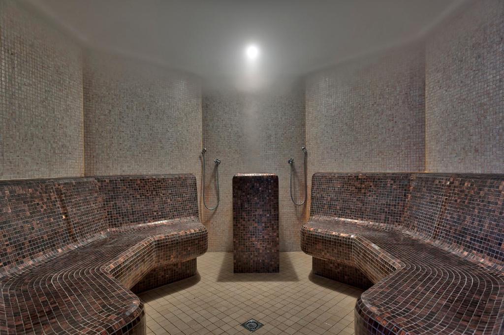 Come ospiti potrete utilizzare liberamente la palestra e i servizi benessere, mentre i massaggi prevedono un costo aggiuntivo. Entrambe le piscine dispongono di una funzione idromassaggio e presentano dimensioni particolarmente spaziose: quella coperta misura 200 m², mentre quella all'aperto ammonta a 500 m². Presso la spa troverete invece una sauna e un bagno turco.