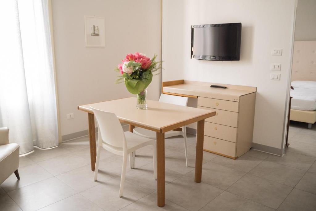 Presso l'hotel troverete monolocali e camere con arredi moderni ed eleganti pavimenti in legno, e potrete gustare una colazione a buffet assortita.