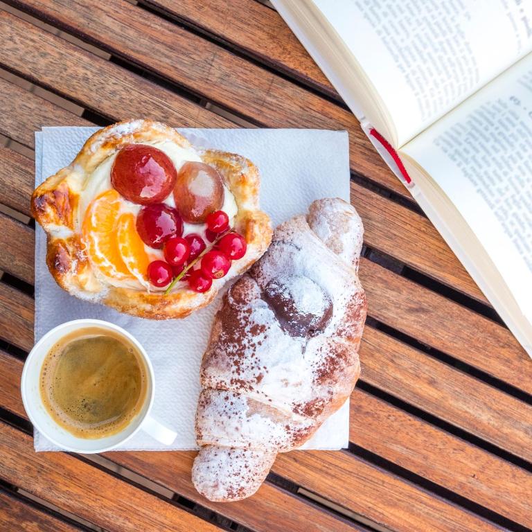 La colazione a buffet del Trevi comprende salumi, formaggi e dolci, e il ristorante serve piatti tradizionali italiani e vini locali.