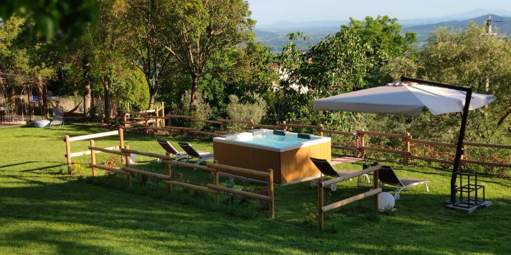 Situato a circa 18 km da Piazza Grande, il Meriggeto offre la vista giardino, un centro fitness, attrezzature per barbecue e una terrazza. La struttura propone una cucina in comune e servizi gratuiti quali la connessione WiFi e il parcheggio privato.