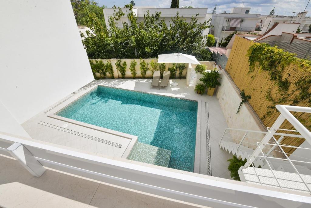 E' una struttura reisdenziale con architettura in stile moderno, realizzata nell'anno 2018. Essa è ubicata in un contesto di abitazione signorili a "ville". E' situata a 250 metri dal mare raggiungibile facilmente a piedi. Essa è ubicata in un punto ove sono presenti tutti i servizi, quali farmacie, pronto soccorso, negozi di tutti i generi, bar, ristoranti, pizzerie. I fini della realizzazione della struttura è quello di dare ai clienti il miglir confort possibile , come quello di aver la piscina di esclusivo utilizzo all'interno della struttura. Dal posto possono essere raggiunti con facilità e a breve tempo tutte le città di notevole interresse storico, culturale presenti nel Salento.