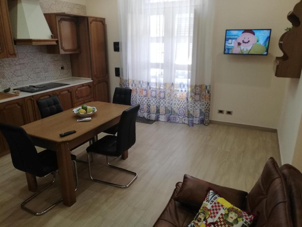 INCANTO D'ETNA GIARRE (CT) CENTRO AD UN CHILOMETRO DAL MARE Casa vacanze composta da cucina, camera da letto con servizio igienico annesso, 50 mq al piano terra. Arredamento confortevole: ampia cucina-soggiorno (4 punti cottura ad induzione, forno, frigorifero e congelatore, macchina del caffè espresso elettrica, lavastoviglie) con tavolo da pranzo, TV satellitare (schermo piatto) e divano letto. 1 camera matrimoniale con annesso servizio igienico munito di doccia / bidet / WC e aria condizionata, oltre ad un letto singolo. Impianto di climatizzazione. A disposizione: lavatrice, ferro da stiro, asciugacapelli. Internet (WiFi, gratuito)