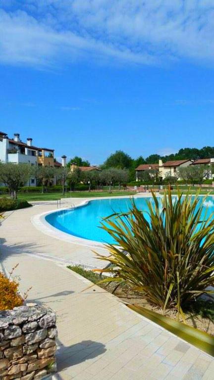 Villetta a schiera vista lago situata in residence immerso nel verde. Un luogo tranquillo dove soggiornare con la famiglia, amici o in coppia, si articola su tre piani, dispone di giardino privato, barbecue, tavoli esterni, due terrazze, cucina dotata di vari comfort e set per cucinare, divano letto, camera matrimoniale con cassaforte e bagno con doccia e lavatrice. All'interno del residence sono presenti piscine, supermarket e bar con servizio di portineria all'ingresso.