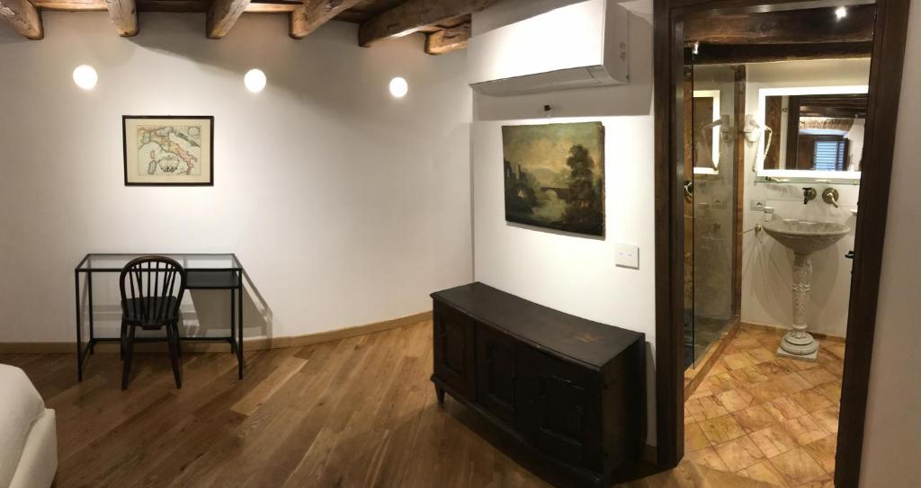 abbiamo curato i dettagli di una ristrutturazione durata quasi tre anni, per recuperare il fascino antico di questa casa di importanza storica. Nella Roma imperiale, diversamente da oggi, le case ai piani inferiori erano quelle di maggior valore, considerato il rischio frequentissimo di incendi e la comodità della vicinanza all'acqua. Per la sua importanza, il palazzo è vincolato dal Ministero dei Beni Culturali. La via dei Giubbonari conduce alla famosa piazza di Campo dei Fiori. La casa è ricca di antichi marmi pregiati che provengono dai giardini di antiche famiglie nobiliari romane. Nelle pareti non intonacate spiccano frammenti di anfore.