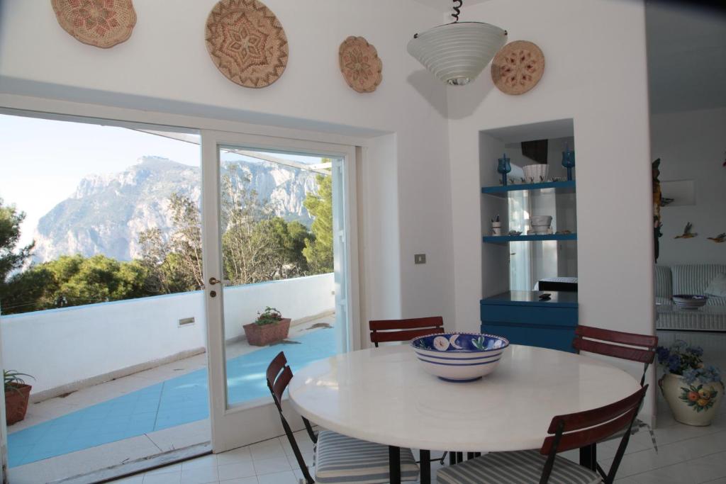 Incantevole villa a pochi minuti dalla piazzetta e dalle vie dello shopping. Circa 100 mq. più 80mq di terrazzo, due camere da letto, due bagni, ampio soggiorno (con divani letto), zona pranzo, cucina, terrazza panoramica con vista mozzafiato su Marina Piccola, Monte Solaro e Faraglioni.