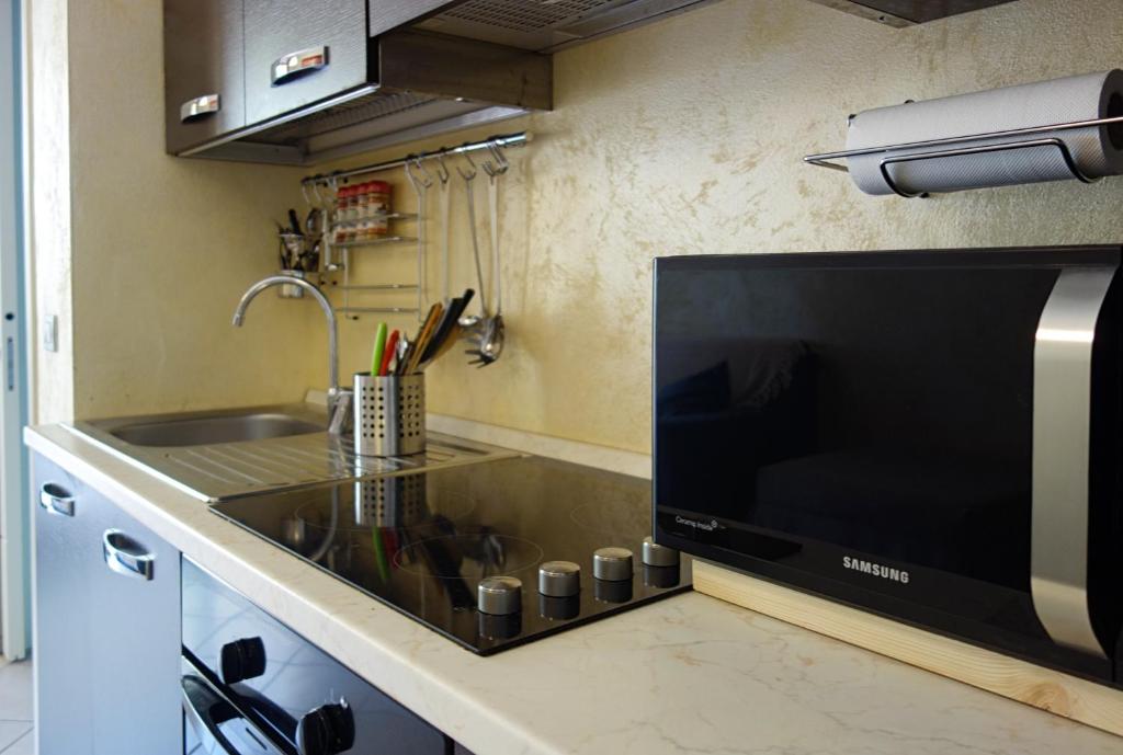 L'appartamento presenta un lettore Blu-ray, una cucina con microonde, frigorifero e forno, un soggiorno con area salotto e zona pranzo, 1 camera da letto e 1 bagno con bidet e doccia. TV a schermo piatto e lettore DVD.