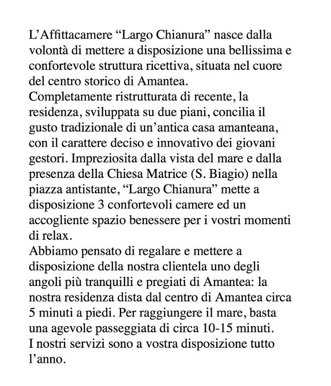 Situato ad Amantea, a 500 m dalla spiaggia di Amantea, il Largo Chianura offre camere climatizzate e una sala comune. La struttura dispone di camere familiari.