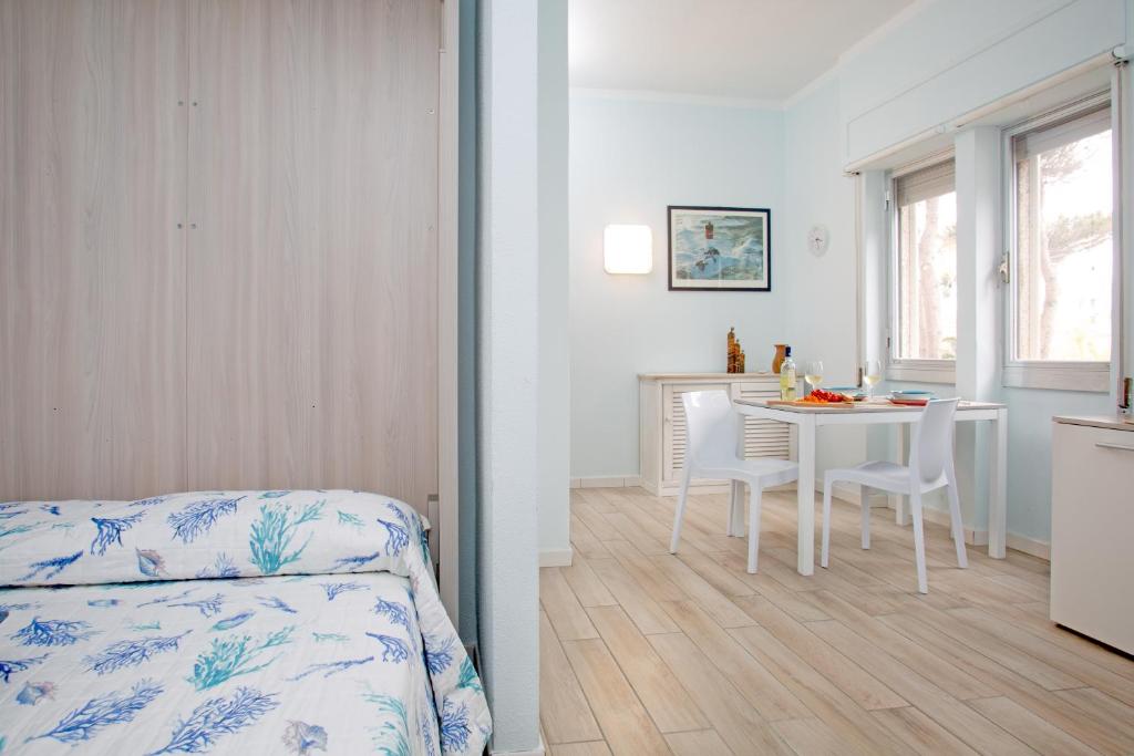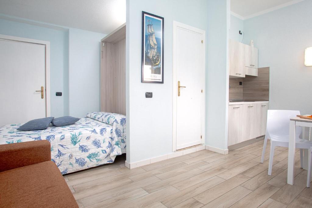 Ampio monolocale nel Residence "Gallo di Gallura" in posizione strategica nel centro di Santa Teresa di Gallura direttamente sul mare ed a 300 mt. dalla spiaggia "Rena Bianca". Il Residence dispone di: discesa a mare privata, piscina, parco, Hall, ampio terrazzo panoramico a picco sul mare e posto auto. L'appartamento è composto da soggiorno con angolo cottura, mobile letto matrimoniale, divano letto e bagno con doccia. In dotazione tv color e lavatrice.