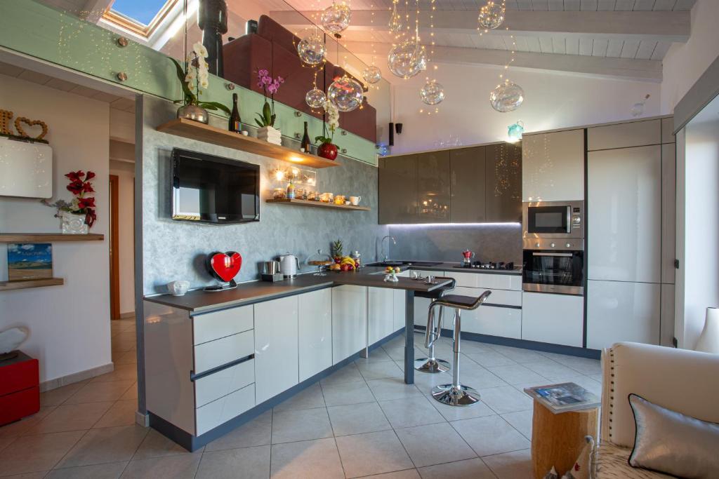 L'appartamento è dotato di 2 camere da letto, 2 bagni, biancheria da letto, asciugamani, TV a schermo piatto con canali via cavo, zona pranzo, cucina completamente attrezzata e balcone con vista sul mare.