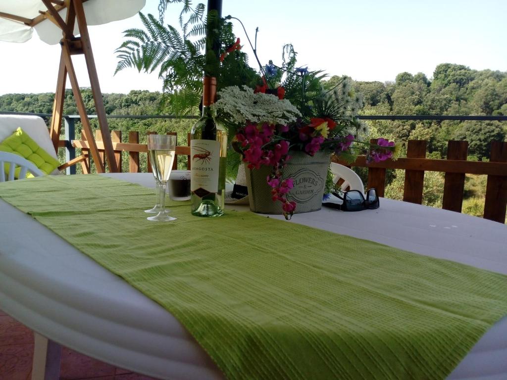 Questa casa di campagna presenta 2 camere da letto, una TV a schermo piatto con canali satellitari, una cucina attrezzata con forno a microonde e frigorifero, una lavatrice e 1 bagno con bidet.