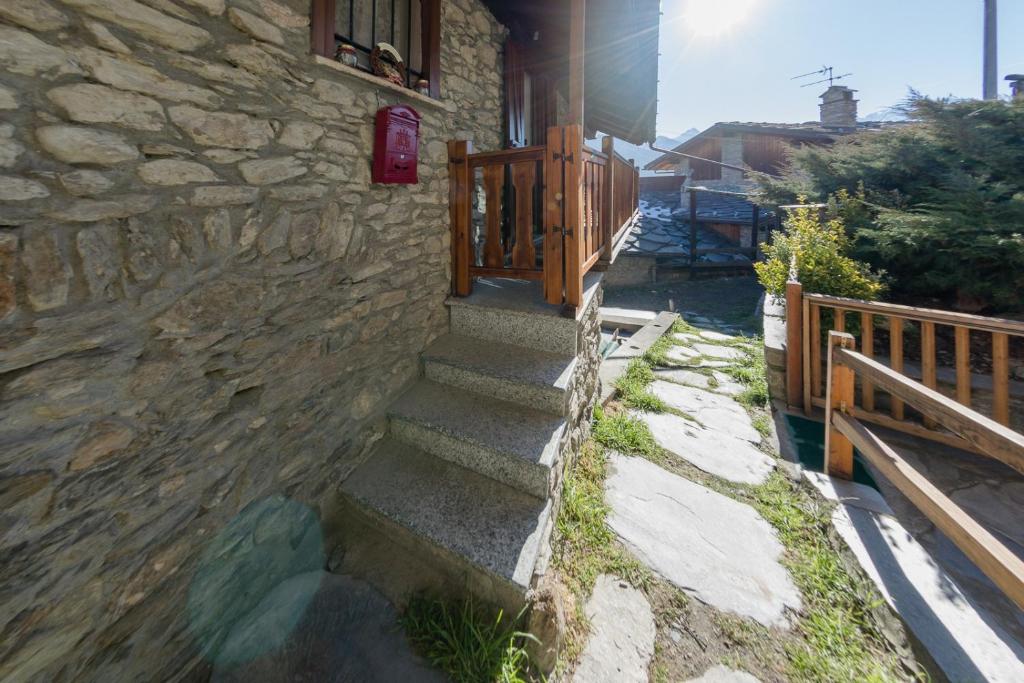 L'alloggio è una casa indipendente su tre livelli in un paesino sopra Sarre a 865 metri sul livello del mare. Se vuoi un posto tranquillo lontano dalla città, questa è la casa che fa per te. Sono disponibili passeggiate dal paese per raggiungere Aosta. Al piano terra c'è una cucina attrezzata con frigo e piano cottura con pentole, piatti e stoviglie a disposizione. Al primo piano troverete il soggiorno con divano trasformabile in letto singolo e il bagno. Infine, nella mansarda in legno, in un ambiente caldo, la camera da letto ha un balcone con vista sulla vallata con sedie e tavolino.
