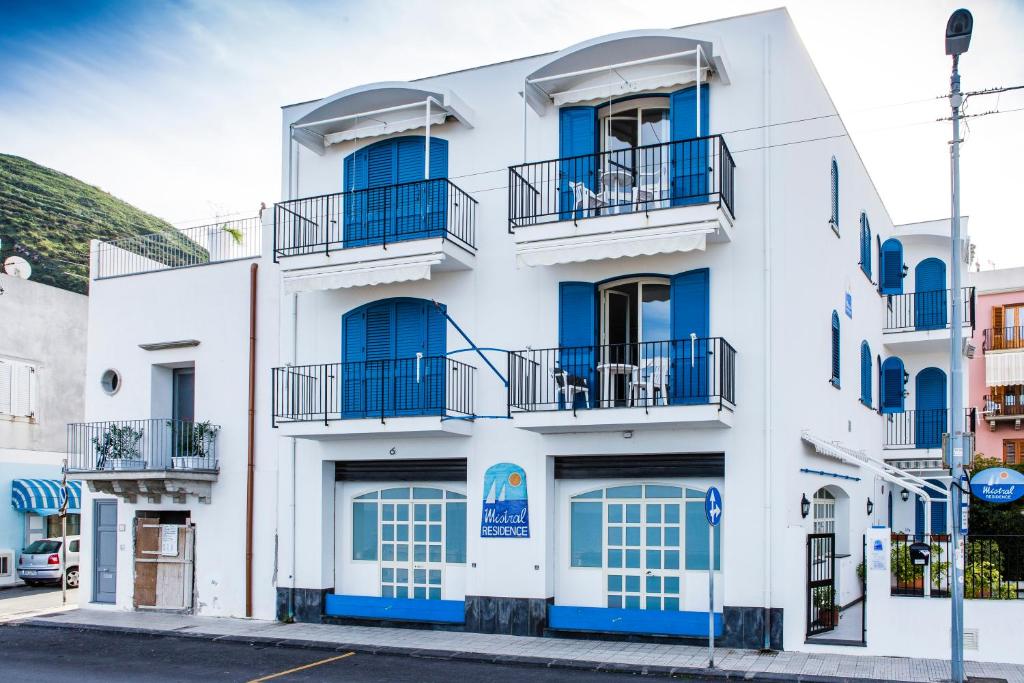 Situato a Canneto, sull'Isola di Lipari, il Mistral Residence offre un giardino, una terrazza solarium, la connessione WiFi gratuita e unità abitative dotate di arredi in stile mediterraneo, cucina e balcone affacciato sul mare.