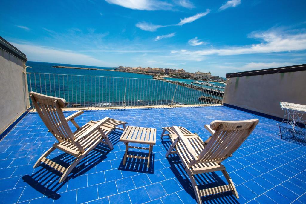 Le camere e gli appartamenti vantano pavimenti in parquet, bagno in marmo e viste sul Mar Ionio, sulla spiaggia o sui tetti di Ortigia.