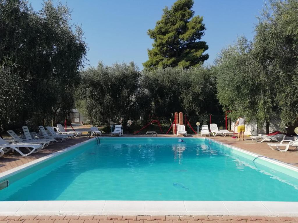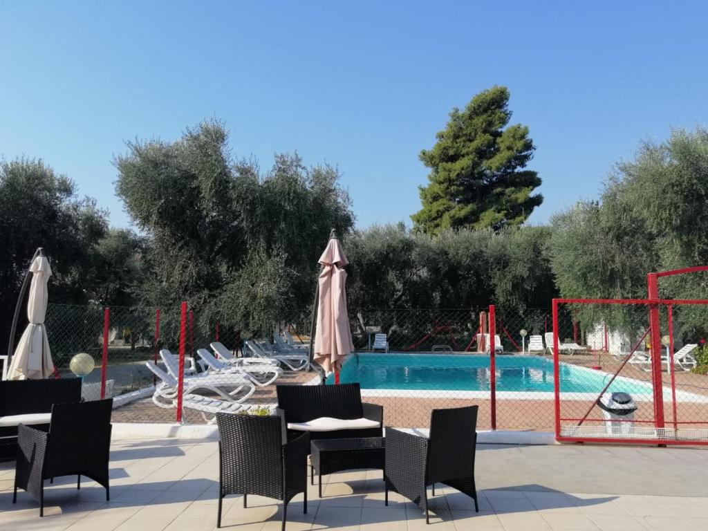 Situato a Mattinata, l'Ombra degli Ulivi offre una vista sulla piscina, un bar, un salone in comune, un giardino e una terrazza.
