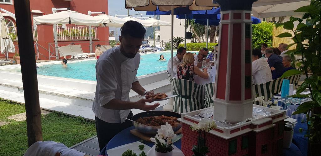 L'albergo vanta uno snack bar e un raffinato giardino completamente attrezzato con sedie a sdraio, lettini e teli da mare.
