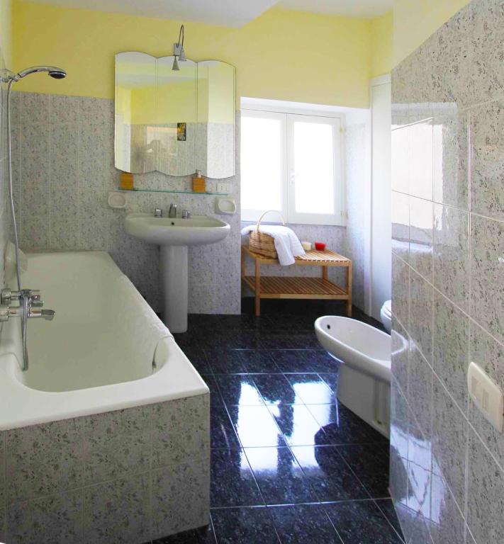 L'appartamento presenta 2 camere da letto, una TV a schermo piatto, un angolo cottura attrezzato con frigorifero e forno, una lavatrice e 2 bagni con bidet.