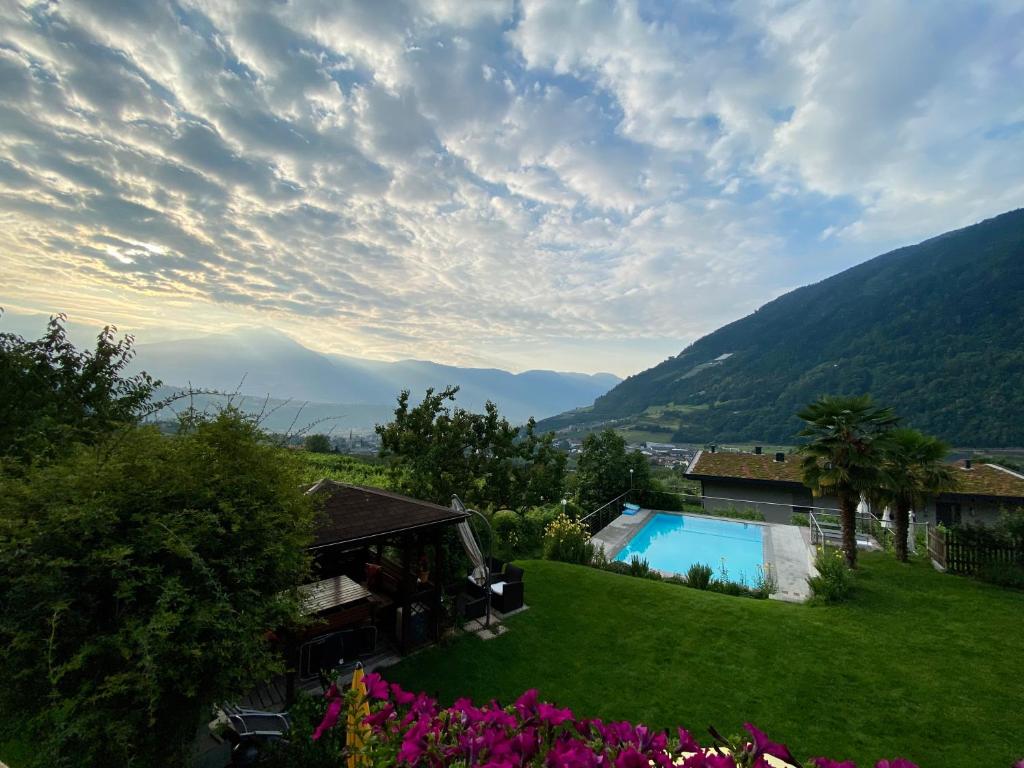 Circondata dai frutteti, la Pension Alpenblick è situata a un'altitudine di 400 metri e offre una splendida vista sulle montagne, una piscina estiva, un giardino e ottimi collegamenti via autobus con Lagundo.