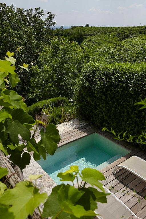 Nel cuore della Valpolicella, B&b di charme con viste panoramiche in un' antica casa in pietra del '600 recentemente ristrutturata secondo principi ecologici: un' elegante suite affacciata sui vigneti, ampio giardino a terrazze e vasca idromassaggio