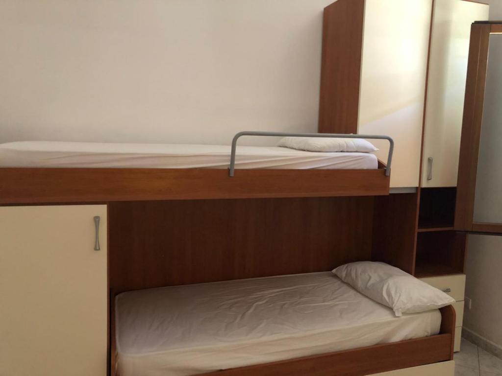 The apartment has a bedroom with double bed, kitchen / living room with double sofa bed, bathroom with shower, small bedroom with three single beds. The kitchen is complete with utensils and oven.