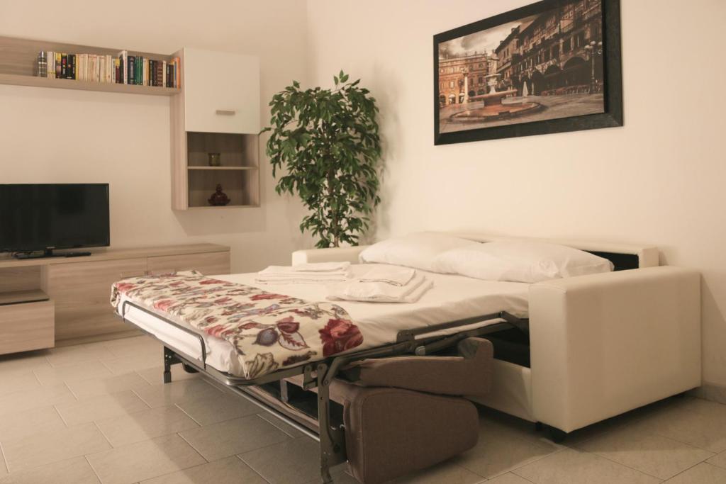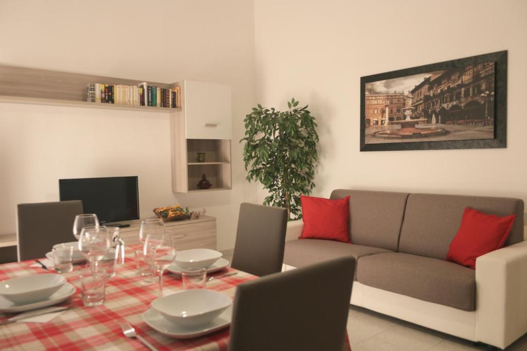Appartamento, recentemente ristrutturato, al piano terra in tranquillo condominio a due passi da Castelvecchio e dal centro storico. Dispone di soggiorno con divano letto matrimoniale, cucina, bagno, camera matrimoniale e cameretta con due letti singoli. Facilità di posteggio gratuito a 500 metri ed a pagamento proprio davanti al condominio. E’ disponibile una cucina interamente accessoriata, con tutto l’occorrente per un soggiorno confortevole e in totale autonomia; bollitore, forno, frigo, piano cottura a gas, caffettiera, stoviglie di ogni genere. E' presente anche la lavatrice. Il bagno è dotato di doccia e forniamo bagnoschiuma, sapone mani e asciugacapelli. Nell'appartamento è presente uno stendibiancheria, ferro e asse da stiro. Per i più piccoli mettiamo a disposizione un lettino da campeggio ed un seggiolone. I letti vengono preparati con lenzuola e trapunte con copri piumoni in cotone. Vengono forniti tre asciugamani per ogni ospite (viso, doccia e bidet).