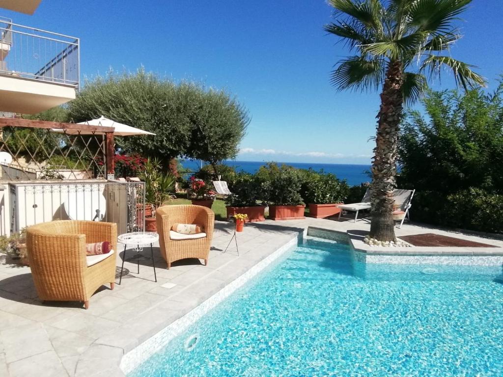 Luxurious and exclusive apartment in Cefalù furnished and equipped with taste and elegance,equipped with everything that can make your holiday unforgettable.The apartment is studied in detail,enjoys a privileged position,with lovely views of the Gulf of Kalura,and is less than a km from the sea.It has a fitted kitchen with appliances and a lounge area with fine furnishings.Sleeps up to 6 people: 2 double bed,1 bedroom with two singular bed,2 bathrooms.The large windows of the apartment opening in to the garden,with pool also equippedwith Jacuzzi ,and furnished with beds,chairs and sofas.Various terraces furnished,and in another corner of the garden,is collocated the barbecue,the kennel and the space provided for pets.