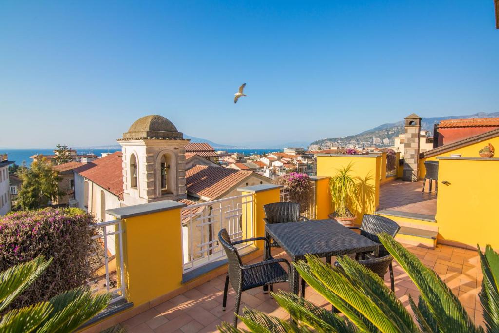 La struttura Sine Tempore è ubicata in un edificio storico situato sulla strada principale di Sorrento (Corso Italia). Ciò consente all'ospite di avere tutti i servizi di cui potrebbe necessitare a soli pochi metri dalla "sua" casa: supermarket, tabacchi, negozi vari e fermata autobus. Al quarto piano dell'edificio si può godere di una vista mozzafiato che spazia dal Golfo di Napoli alle colline di Sorrento, il tutto mentre ci si rilassa a tavolino a bere un bicchiere di vino. La centralità della struttura è il nostro fiore all'occhiello: a soli 10 minuti di cammino si raggiunge la fermata della Circumvesuviana che collega Sorrento a Pompei, Ercolano e Napoli, così come il porto per raggiungere Capri e Napoli. Il nostro obiettivo è far sentire l'ospite come nella propria casa ed è per questo motivo che amiamo consigliarlo su visite, escursioni e ristoranti.