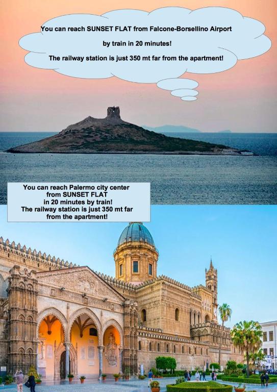 La struttura dista 16 km da Palermo e 21 km da Monreale. Il Sunset Flat dista 12 km dall'Aeroporto Falcone-Borsellino, lo scalo più vicino.