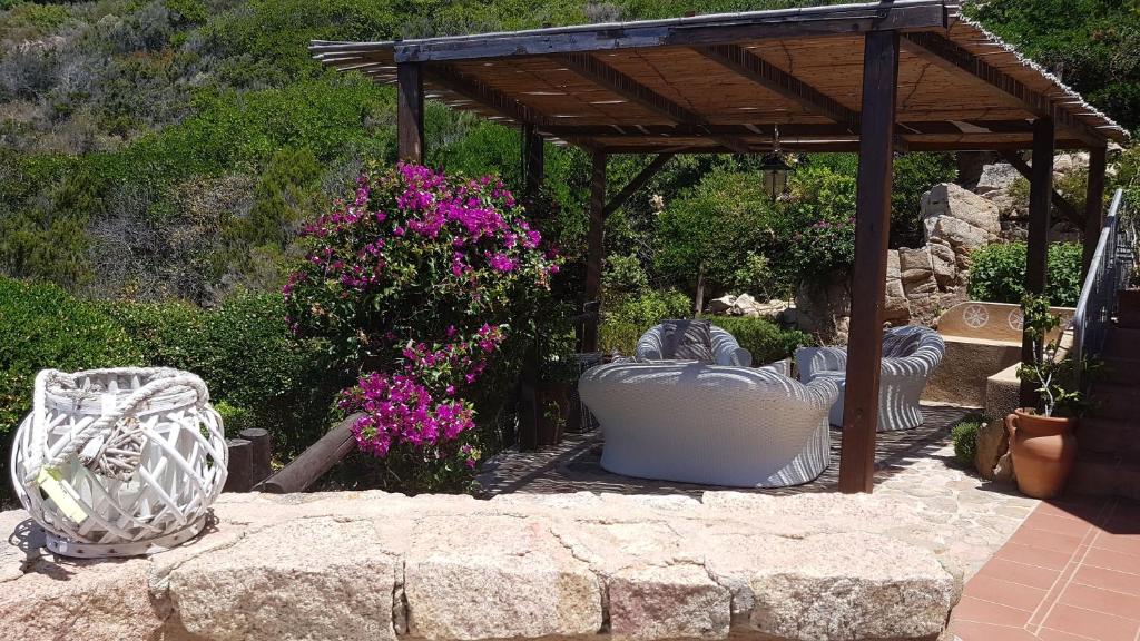 Splendida villa singola difronte al mare smeraldo della Sardegna. La villa, incastonata tra i graniti rosa, ha un ampio soggiorno con grande veranda che domina il golfo di mare che bagna la Sardegna e la Corsica, ha inoltre 2 stanze da letto e due bagni, un ulteriore divano-letto matrimoniale, per un totale di 6 posti letto. E' presente un'ampia cucina e una zona solarium. Tutti gli ambienti sono climatizzati autonomamente. Attorno alla casa 500 mq di giardino mediterraneo incastonato tra le rocce granitiche della Gallura e una piscina spettacolare con una vista mozzafiato a 180 gradi sul mare. Nel solarium sono presenti lettini prendisole e un ombrellone di 10 mq. La villa ha un parcheggio auto esclusivo.