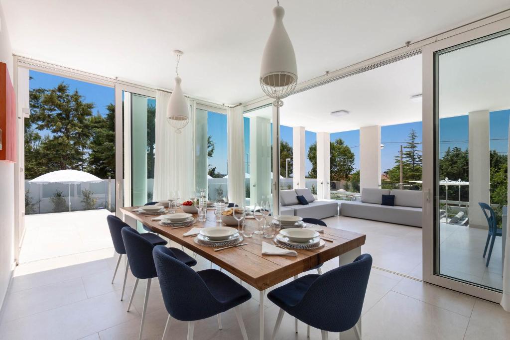 La villa presenta 7 camere da letto, una TV a schermo piatto, una cucina attrezzata con lavastoviglie e forno a microonde, una lavatrice e 6 bagni con bidet. Per una maggiore comodità, la struttura fornisce asciugamani e lenzuola a un costo aggiuntivo.