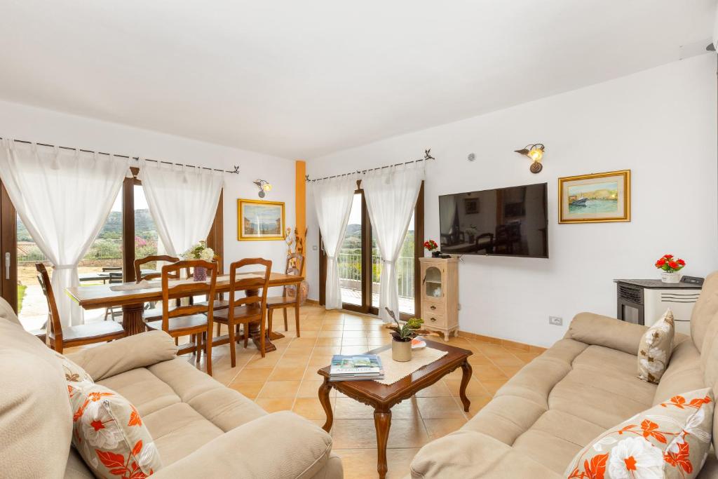I posti auto sono disponibili nella proprietà. Gli animali domestici sono ammessi. È permesso fumare. Accesso e interno senza gradini. Porte larghe. Villa Tomaso si trova alla periferia di Arzachena, nel nord della Sardegna; è una casa vacanze rilassante con vista sulle montagne, lontano dai turisti. La villa (150 m²) è composta da un soggiorno, una cucina ben attrezzata con lavastoviglie, 3 camere da letto e 2 bagni e può quindi ospitare 5 persone. I servizi aggiuntivi includono Wi-Fi (adatto per le videochiamate), aria condizionata e una televisione satellitare. Ci sono 3 camere da letto; le camere 1 e 2 hanno letti queen size, la camera 3 ha un letto singolo. L'area esterna privata ha una terrazza coperta e un giardino con mobili e una griglia. Qui si può godere l'atmosfera tranquilla durante un pasto cucinato in casa. La spiaggia de La Sciumara si trova a 10 minuti in auto (8,8 km). Il ristorante più vicino si trova a 5 minuti a piedi (505 m); diversi caffè, bar e un supermercato sono raggiungibili in 3 minuti in auto (4,7 km). Palau si trova a 9 minuti di auto (8.5 km). L'aeroporto di Olbia Costa Smeralda è a 45 minuti di macchina (36,8 km), così come il porto Marina di Porto Rotondo (36 km). Le lenzuola e gli asciugamani sono inclusi nel prezzo.