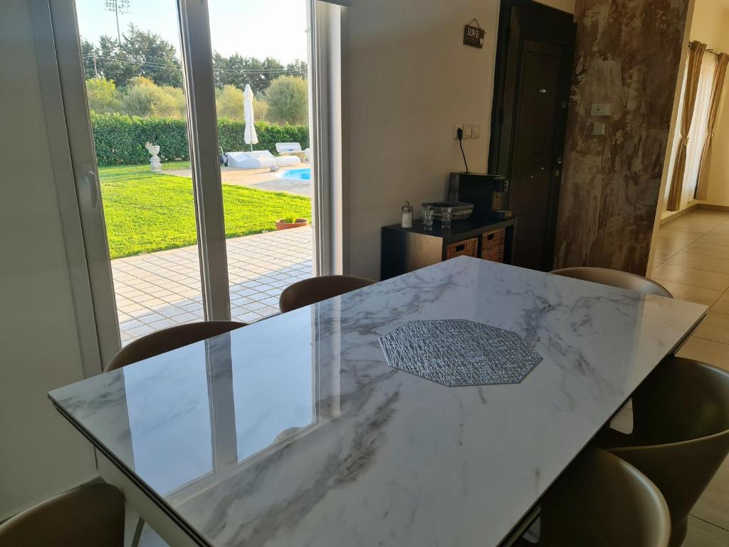 The villa features 3 bedrooms, 2 bathrooms, bed linen, towels, a flat-screen TV with satellite channels, a dining area, a fully equipped kitchen, and a patio with pool views. For added convenience, the property can provide towels and bed linen for an extra charge.
