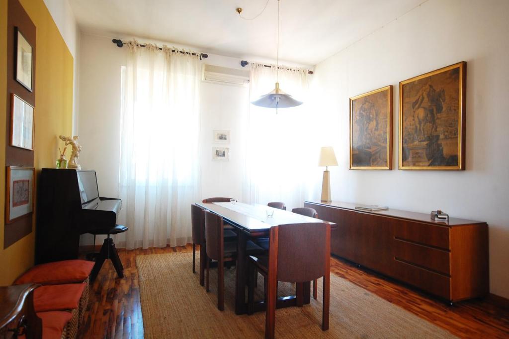This beautiful, bright and spacious apartment, offers a unique terrace with a spectacular view over Castel Sant'Angelo and other Church's Domes, being on the seventh floor of a massive and beautiful building. Few steps to Saint Peter's and the Vatican Museum; walking distance to Piazza Navona, Pantheon and Trastevere. Owners of this property took good care of details: most of the furniture and objects are family memories and in the dining room you can also enjoy a piano. The apartment features, as soon as you enter, a large living-dining room with a comfortable sofa convertible in a double bed, and access to the beautiful terrace. A small corridor leads to the master bedroom on the right side, and to the kitchen on the left side. Between this two rooms stands the bathroom. The kitchen is very well equipped and has a laundry area where you can find the washing machine and a closet. Seventh floor with lift. Divided into: Terrace Living room with double sofa bed Dining room Kitchen Double bedroom Bathroom with tub/shower