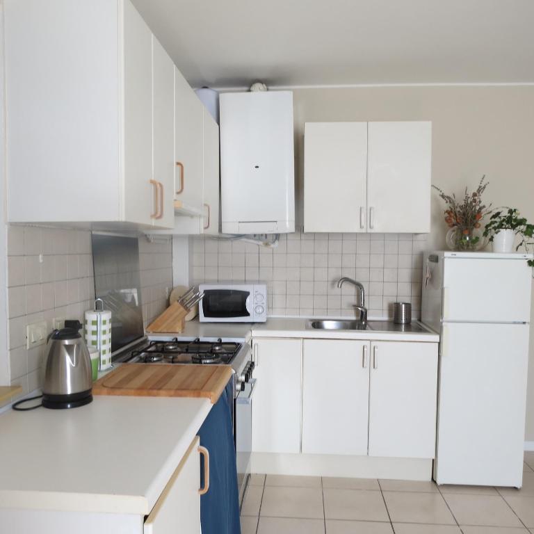 L’appartamento presenta 2 camere da letto, una cucina con microonde e frigorifero e 1 bagno con bidet, pantofole e lavatrice. Potrete usufruire di asciugamani e biancheria da letto.